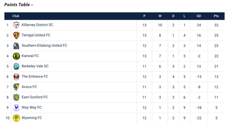 “A tough result to take for us, in a game we really threw the three points away. Credit to Wyoming who defended with all players behind the ball and made it hard to break down. Their number nine had an amazing game and was a real difficult player to handle and was the difference on the day,” voiced Terrigal’s head coach Pete Edwards.