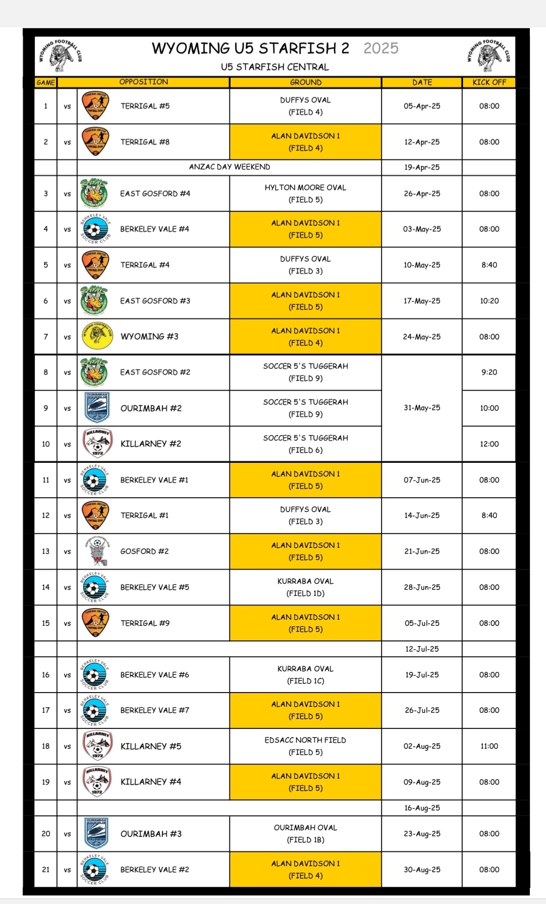 2025 Training Schedules