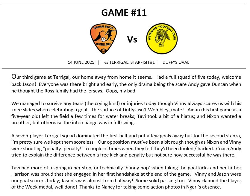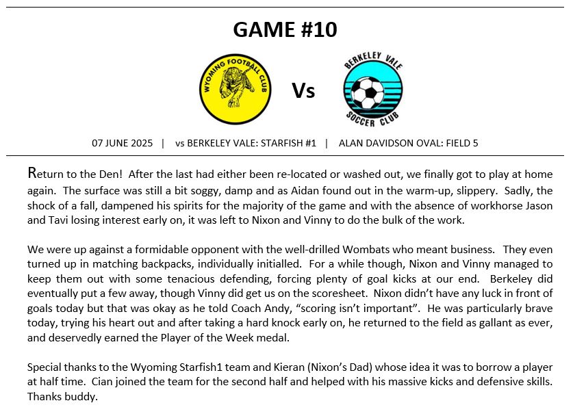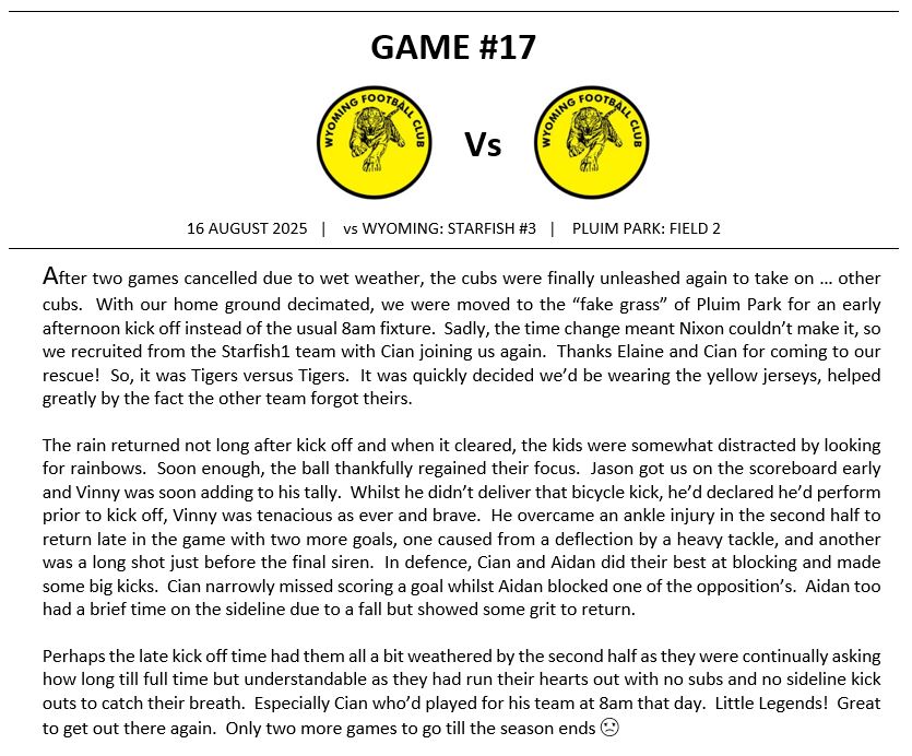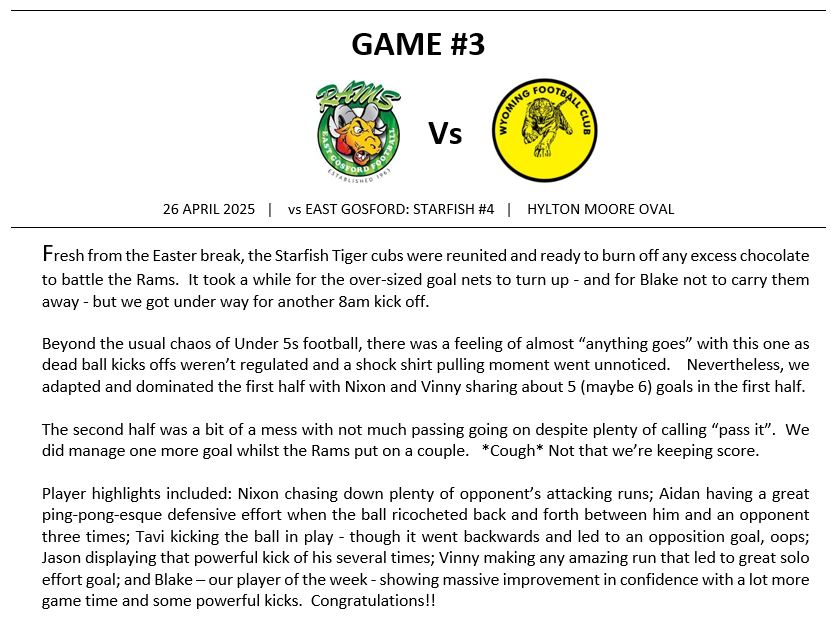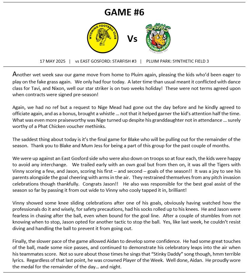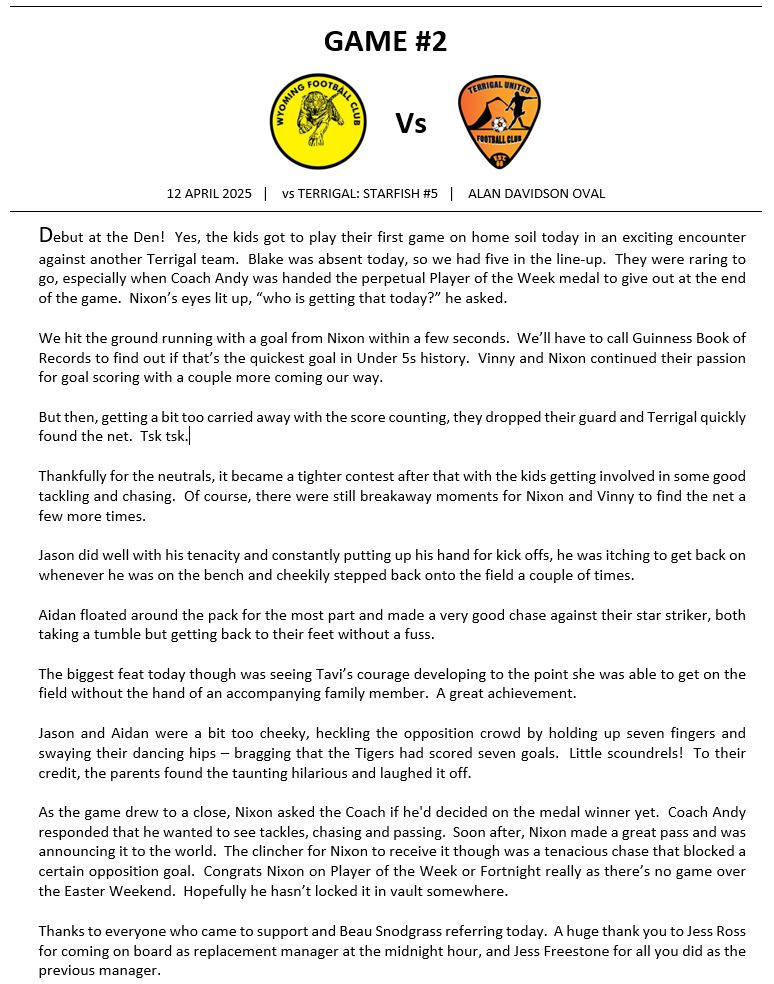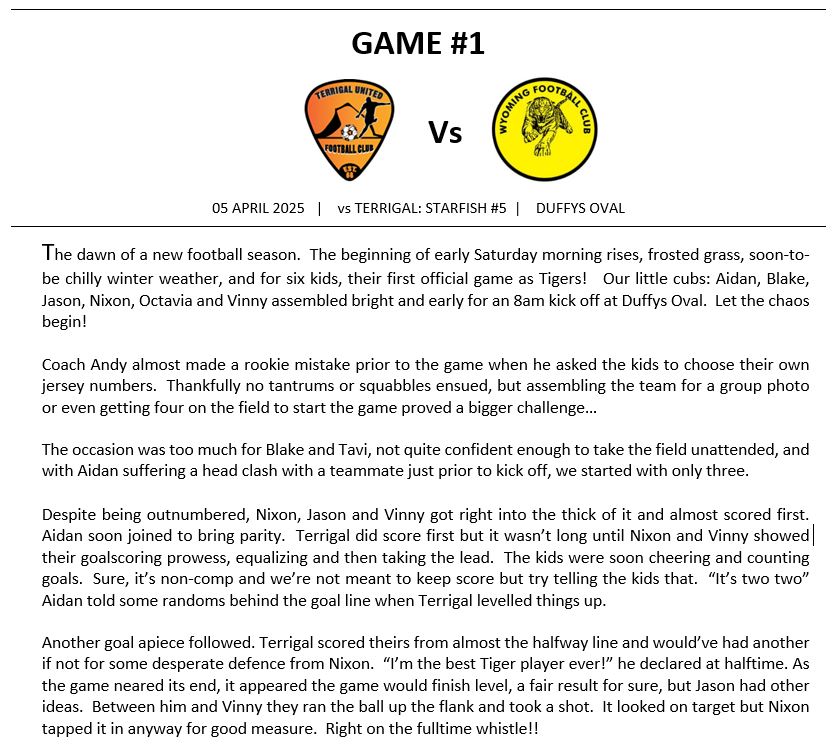 Match Reports (Tiger Tales)