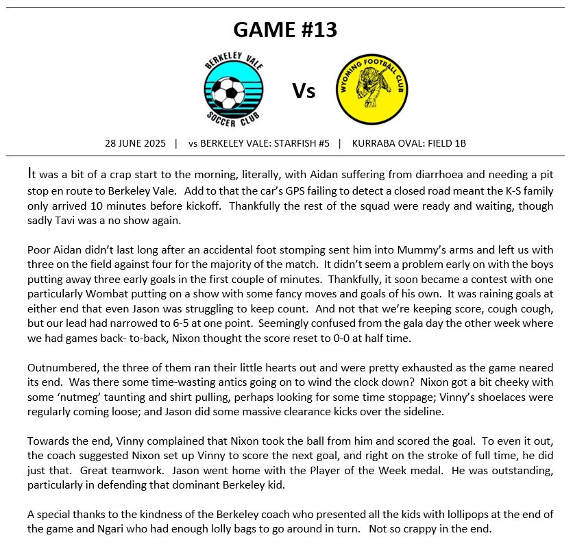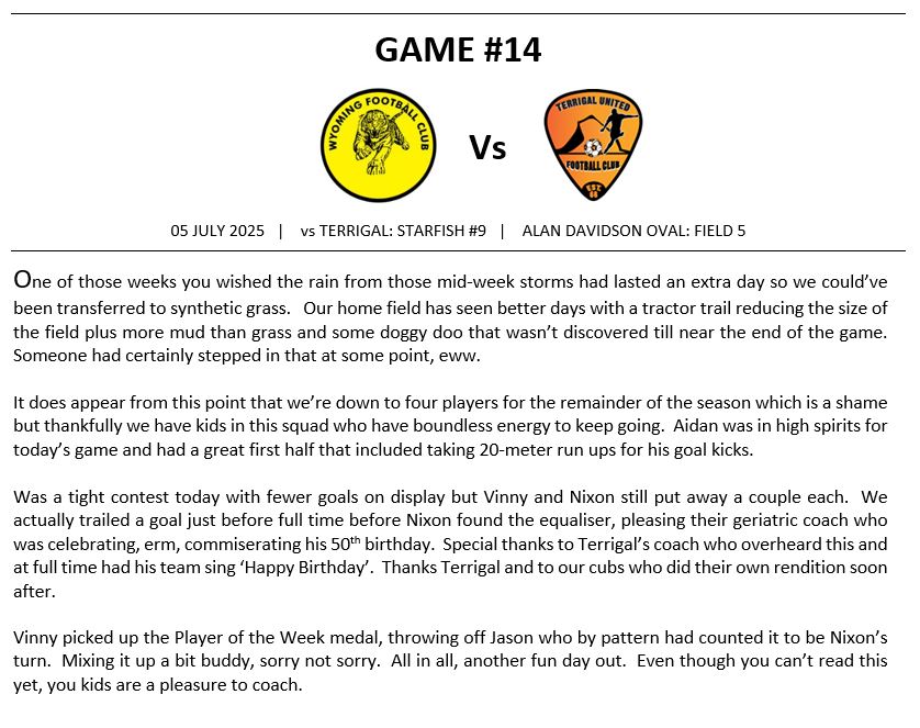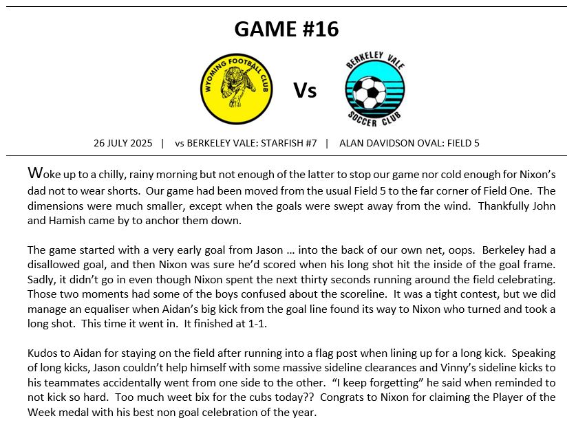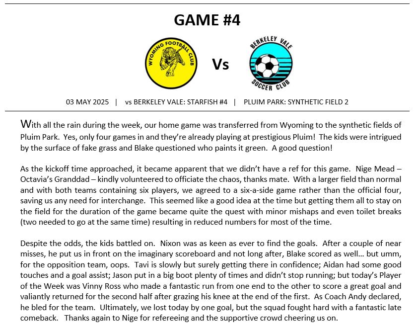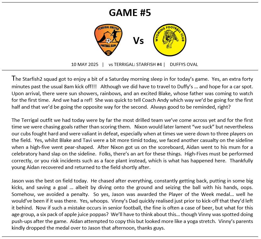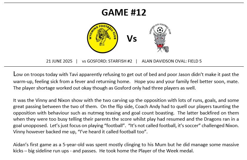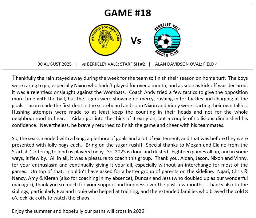 Match Reports (Tiger Tales)